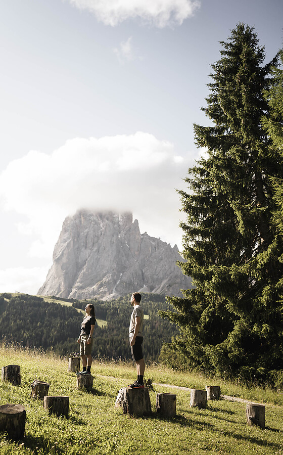 Infected by the sporting enthusiasm of my hosts, I am drawn out into the great outdoor. They inspire me to discover hidden corners and provide me with new insider tips every day. I hike across colourful alpine meadows. I walk through fragrant and fresh forests. I pedal along. It is so quiet on the high plateau of Monte Pana that you can hear the branches swaying in the wind and the birds beating their wings.